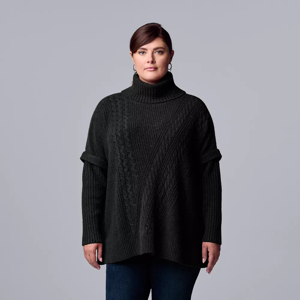 Cozy comfort meets style in this women’s cable knit poncho from Simply Vera Vera Wang.