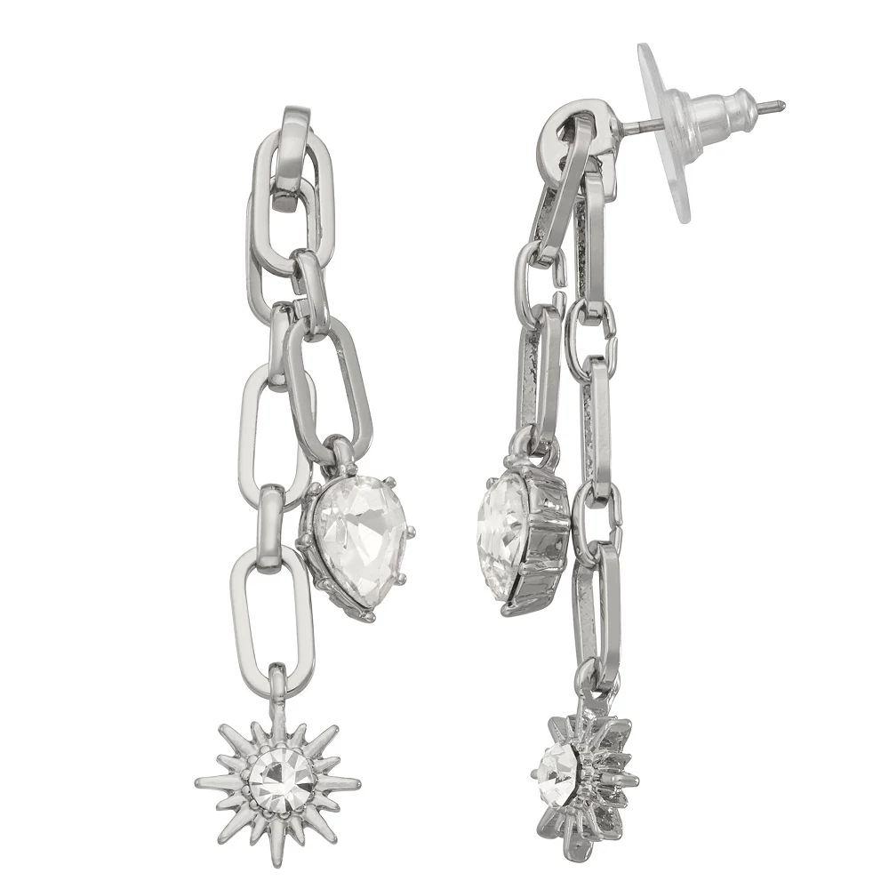 The fun and beauty in these Simply Vera Vera Wang Silver Tone Linear Starburst Earrings are hard to contain.