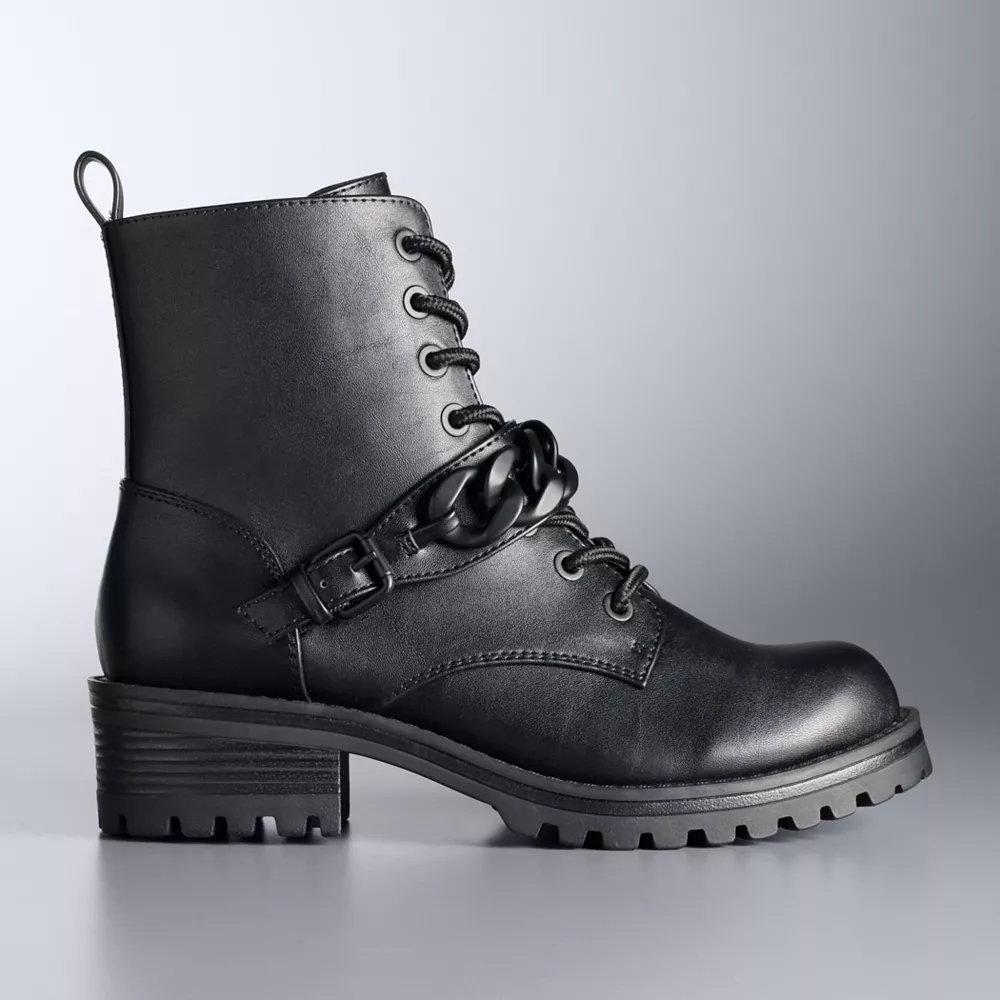 Add to your bold style with these edgy Simply Vera Vera Wang Trombone women’s combat boots.