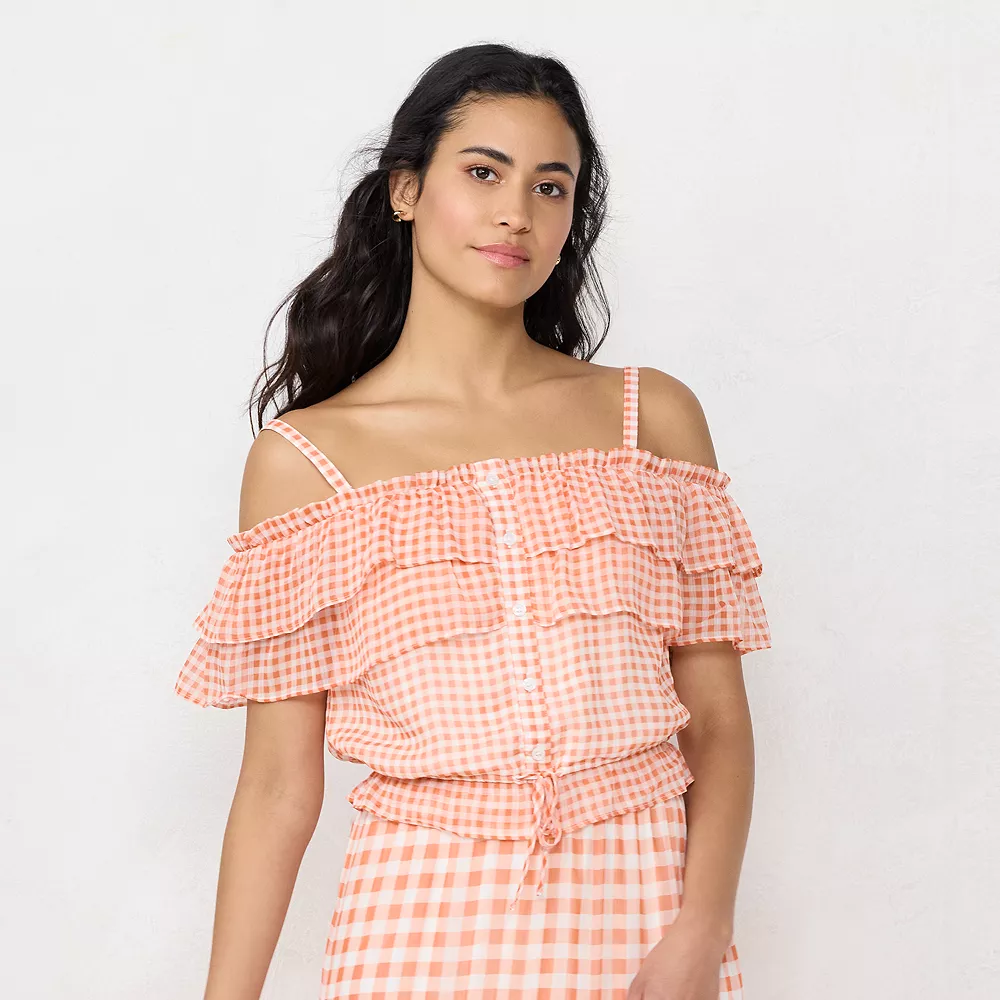 Enjoy cheerful summer style with this women’s off-the-shoulder top from LC Lauren Conrad.