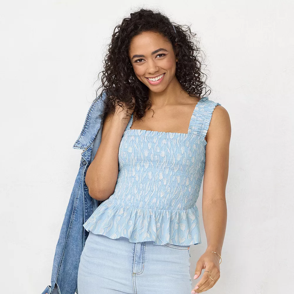 Enjoy a stylish summer look with this smocked peplum women’s tank from LC Lauren Conrad.